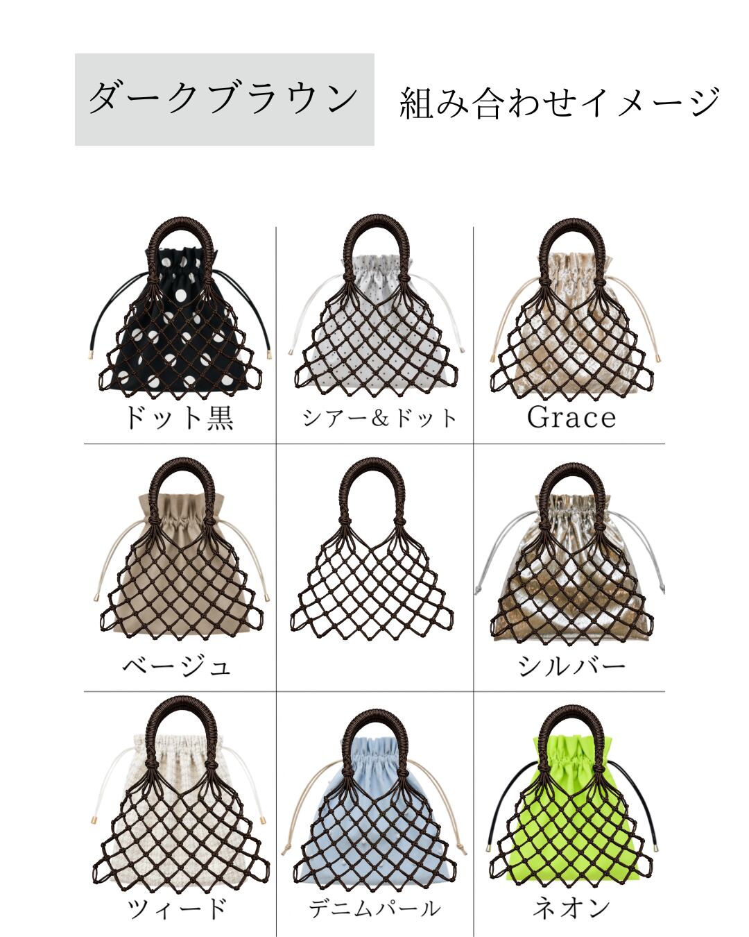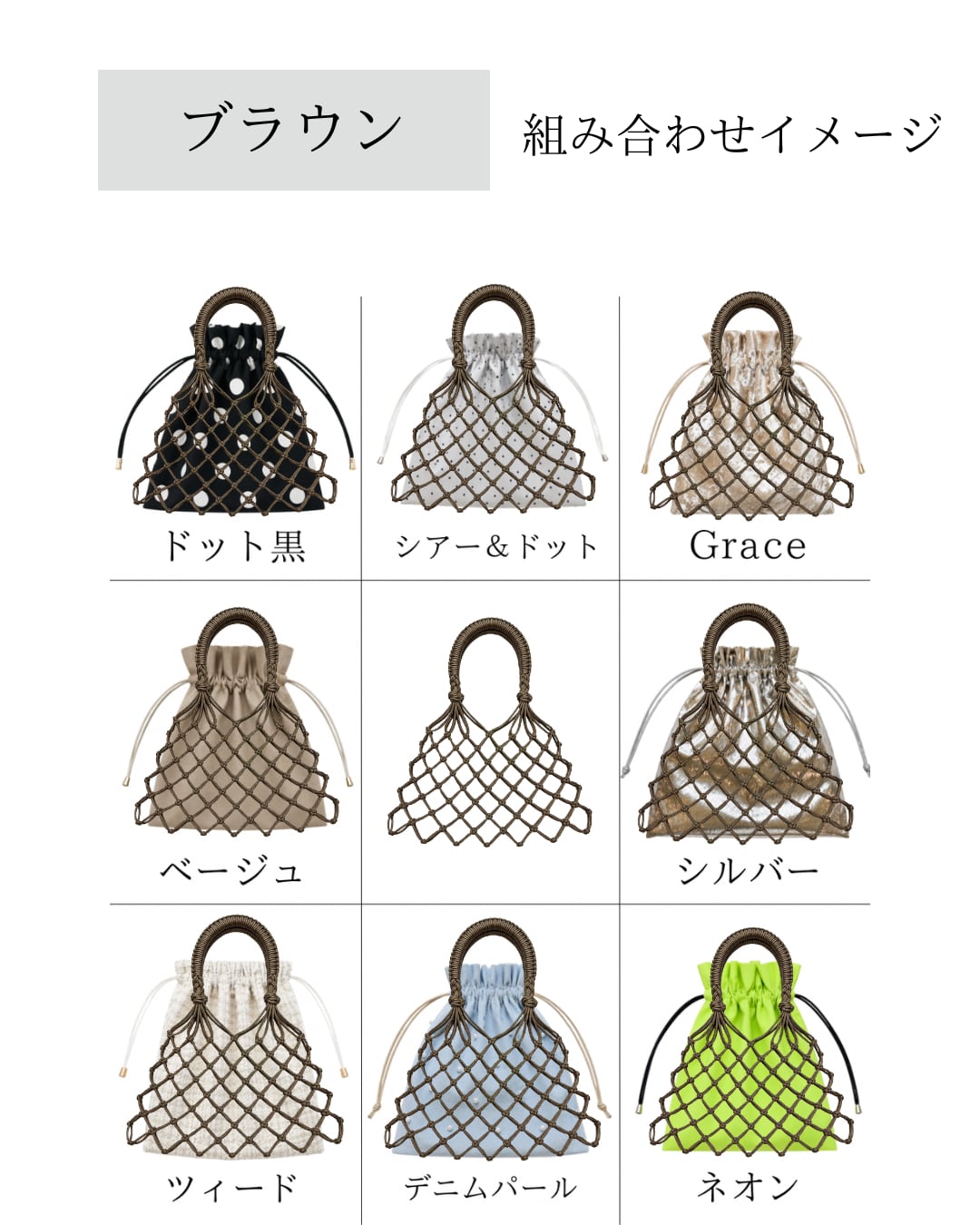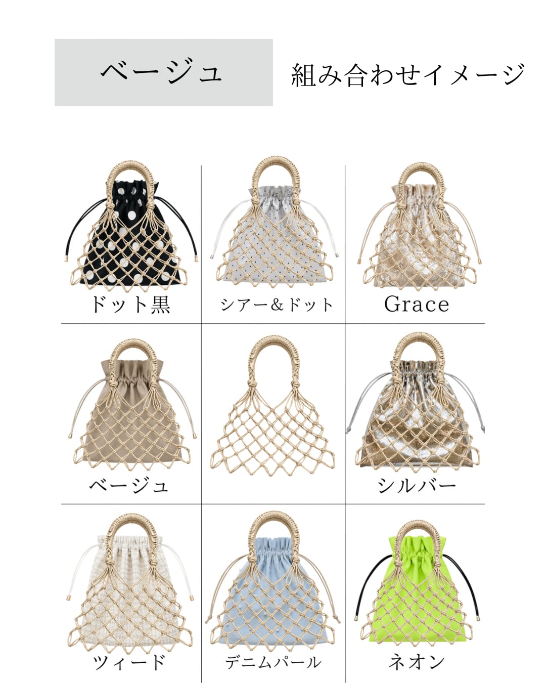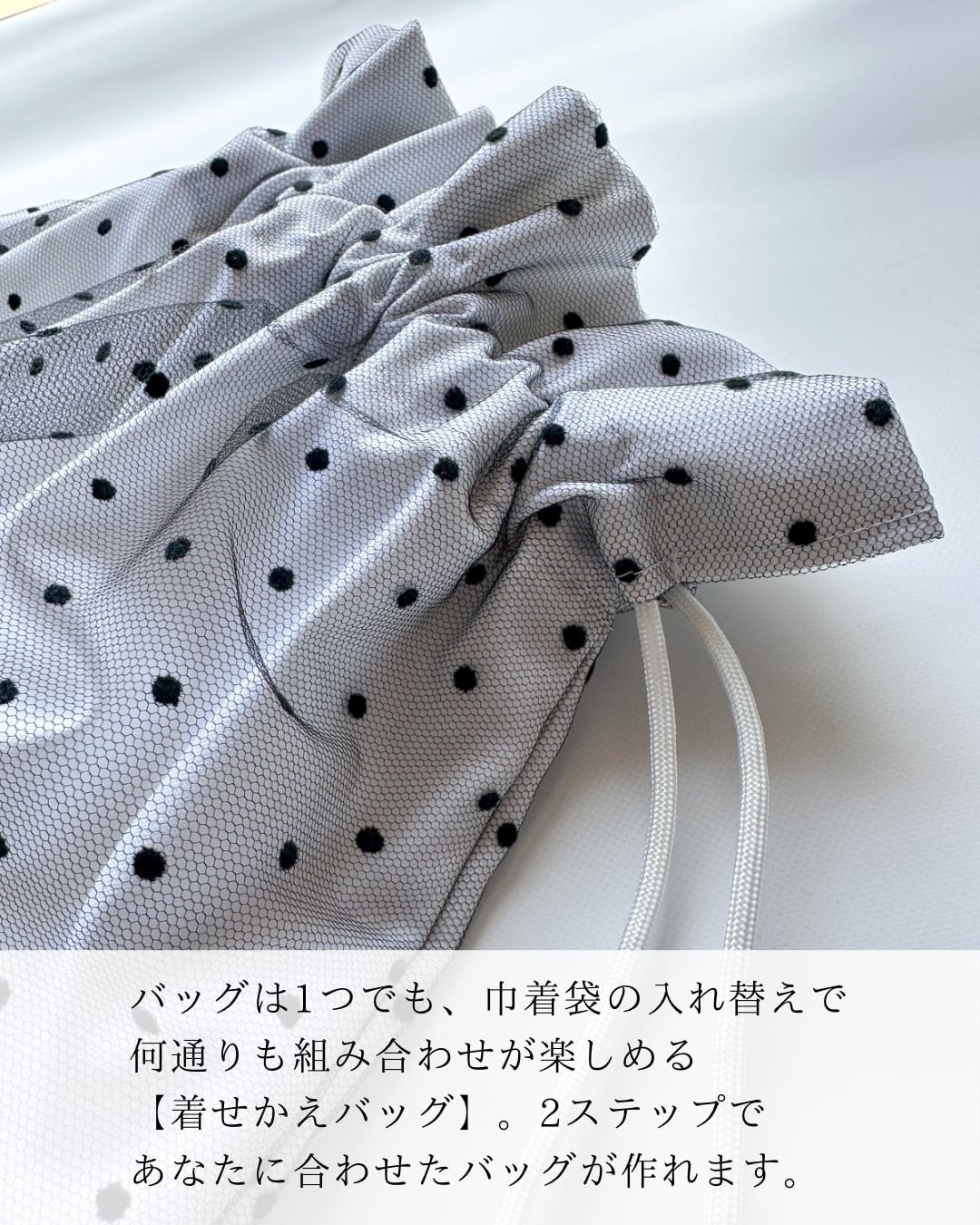 その日の洋服や気分に合わせて、本体バッグは1つでも巾着の組み合わせでオシャレがもっと楽しくなるバッグです。